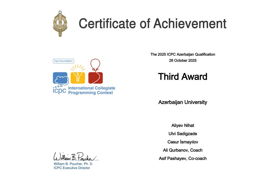Azərbaycan Universitetinin komandası ICPC-nin növbəti mərhələsinə vəsiqə qazanıb