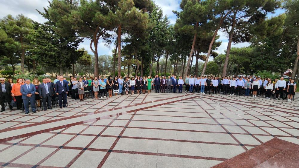 Suraxanı Rayon Heydər Əliyev Parkında məzunlarla keçirilən görüşdə çıxış edən RİH başçısı Əziz Əzizov tədbiri giriş sözü ilə açıb və Azərbaycanın azadlığı və müstəqilliyi uğrunda canından keçərək şəhid olmuş vətən övladlarımızın xatirəsi bir dəqiqəlik sükutla yad edilib.
