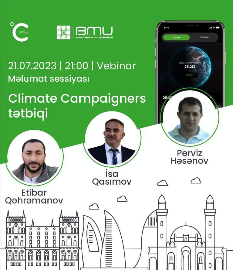 Qeyd edək ki, “Climate Campaigners” adlı mobil tətbiq və onun işləmə prinsipləri haqqında 21 İyul 2023-cü il tarixində saat 21:00-da onlayn vebinar keçiriləcək və “Facebook” üzərindən canlı yayımlanacaq.