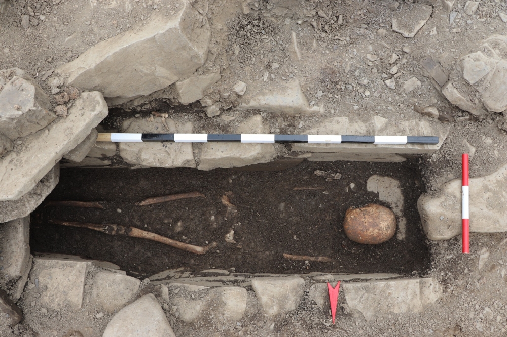 Qəbirlərdə mərhumlar arxası üstə, düz uzadılmış vəziyyətdə dəfn olunub. Qəbir avadanlığı sırasına metal-dəmir və tuncdan silah və bəzək əşyaları, sınmış halda olan saxsı qab nümunələri və s. daxildir. Bu artefaktlar yuxarıda bəhs olunan daş qutu qəbirlərin Son Antik və Erkən Orta əsrlərə aid olduğunu deməyə əsas verir. Monitorinq qrupunun üzvləri 30 saylı daş qutu qəbirin açılışında iştirak ediblər.