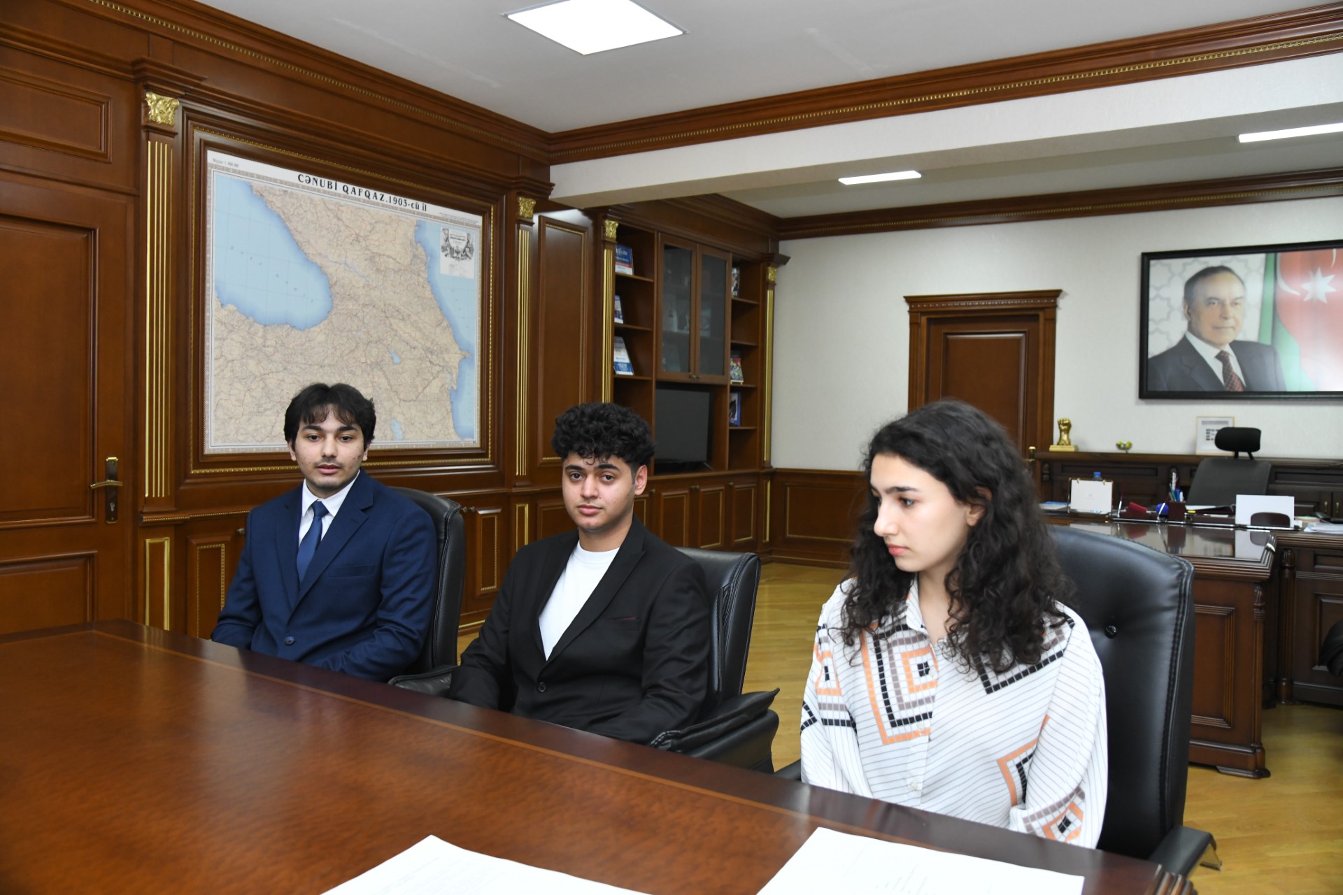 Tehsil.biz xəbər verir ki, təqaüdə layiq görülən tələbələr - Zəhra Quliyeva (riyaziyyat və informatika müəllimliyi ixtisası), Mais Şabanov (kompüter mühəndisliyi ixtiası) və Murad İbrahimov (informasiya texnologiyaları ixtisası) ilə görüşən BMU-nun rektoru Yaqub Piriyev onları təbrik edib, gələcək fəaliyyətlərində uğurlar arzulayıb.