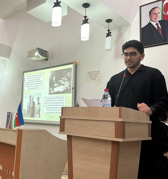 Tədbirdə “Heydər Əliyevin həyatının ilk illəri”, “Bir dahi doğulub gəlir dünyaya”, “Heydər Əliyevin siyasi fəaliyyəti”, “Heydər Əliyev və təhsil”, “Heydər Əliyev və neft strategiyası”, “Heydər Əliyevin hərbi kadrların hazırlanmasında rolu”, “Heydər Əliyev və gənclərin respublikadan kənarda təhsili”, “Heydər Əliyev siyasətinin uğurlu davamı” və s. mövzularda çıxışlar dinlənilib.