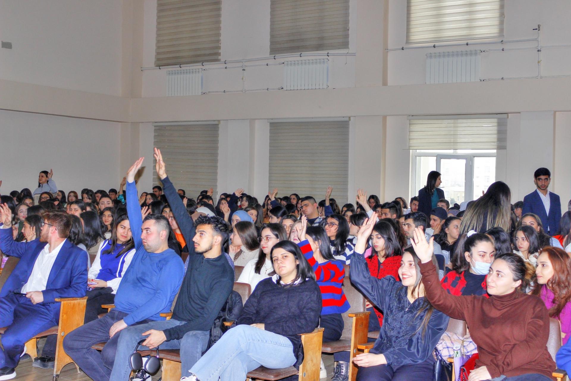 Tehsil.biz xəbər verir ki, Azərbaycan Memarlıq və İnşaat Universiteti, Azərbaycan Texniki Universiteti və 1 nömrəli Bakı Tibb Kollecində 8 yanvar tarixində baş tutan məlumat sessiyalarında səsvermə hüququna malik yüzlərlə tələbə iştirak edib. MSK nümayəndələrinin iştirakı ilə reallaşan görüşlərdə gənclərə səsvermə proseduru, eləcə də seçki gününədək və seçkilər zamanı bilməli olduqları zəruri hüquqi məsələlər çatdırılıb, tələbələri maraqlandıran suallar cavablandırılıb.