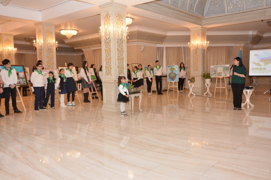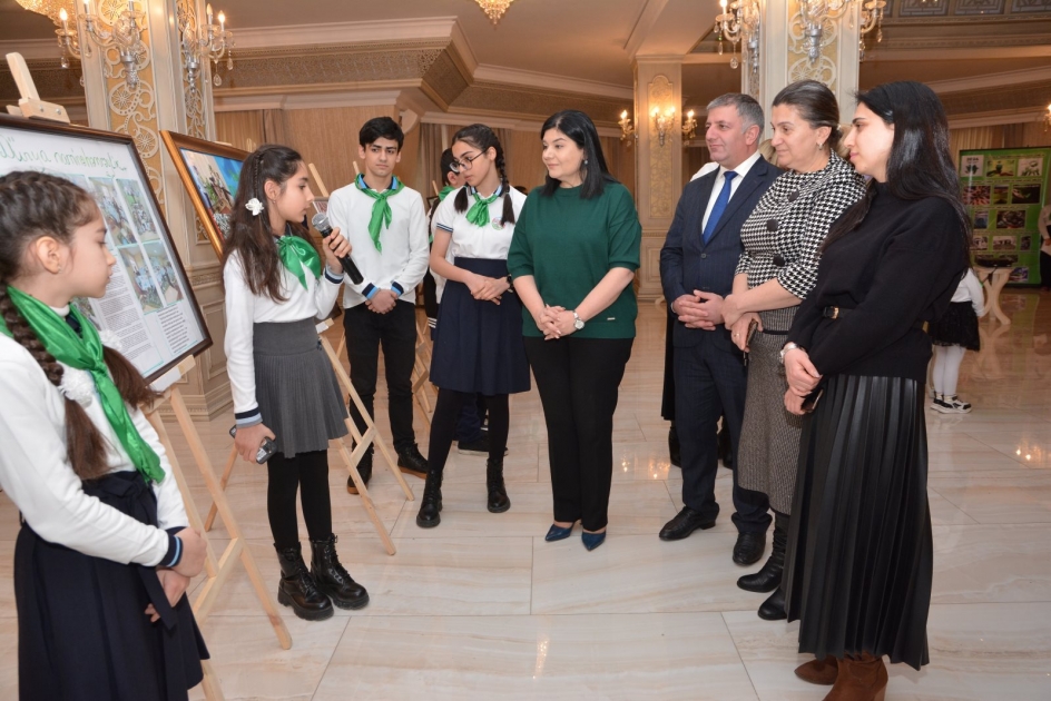 Sonra ətraf mühitin qorunmasına dair şagirdlərin çəkdikləri rəsm və əl işlərinə baxış keçirilib.