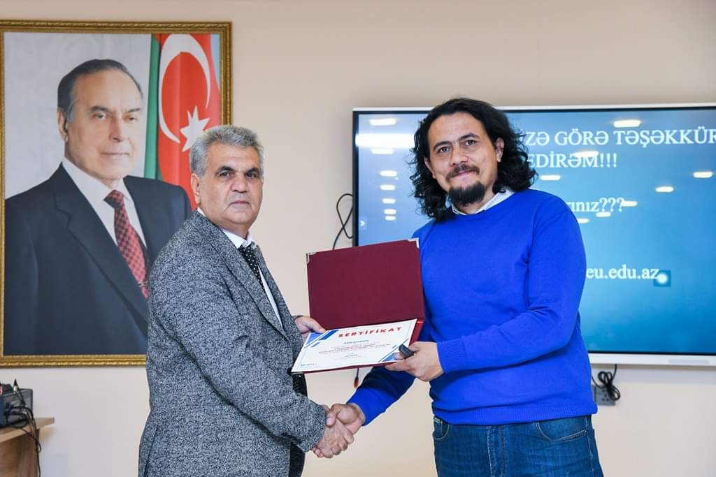 Sonda təlimçiyə təşəkkür sertifikatı təqdim olunub.