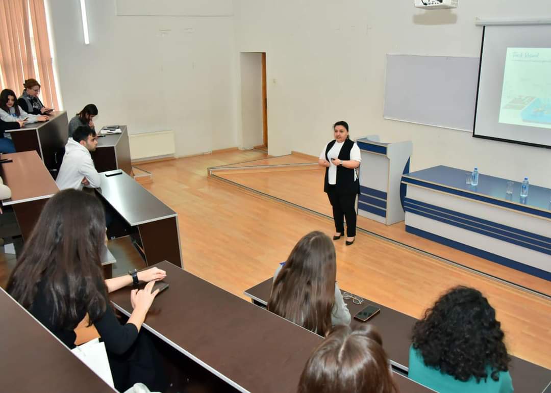 İstehsalat üzrə böyük mütəxəssis Əhməd Əhmədzadə və Mexanika üzrə menecer Fərid Novruzov isə şirkətin istehsal sahələri, fəaliyyət istiqamətləri, hədəfləri və əmək şəraiti haqqında ətraflı məlumat veriblər.Təqdimatdan sonra tədbirin sual-cavab qismində fəallığı ilə seçilən tələbələr “SOCAR Downstream Management” MMC-nin hədiyyələri ilə mükafatlandırılıblar.