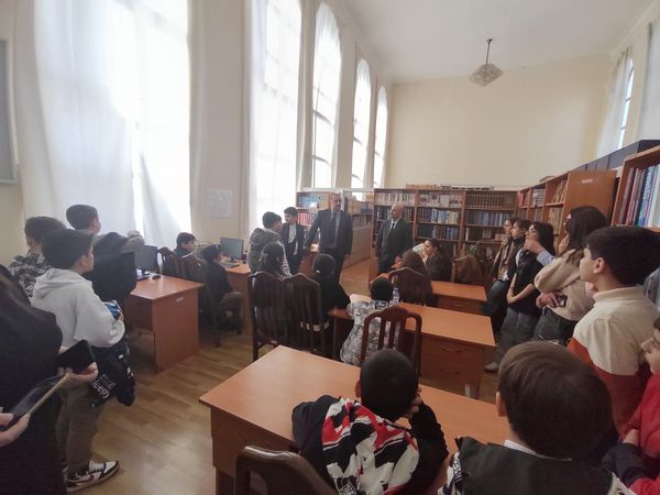 İnstitutun kitabxanasında təşkil edilən tədbirdə elmi işlər üzrə direktor müavini t.e.d. İlqar Niftəliyev institutun tarixi, fəaliyyəti, elmi-tədqiqat şöbələrinin gördüyü işlər haqqında danışıb. Görüşdə 31 mart Azərbaycanlıların soyqırımı günü ilə bağlı danışan İ.Niftəliyev erməni-daşnak dəstələrinin azərbaycanlılara qarşı törətdikləri soyqırım aktları haqqında dərc olunmuş silsilə nəşrlər haqqında məlumat verib, şagirdlərin suallarını cavablandırıb.