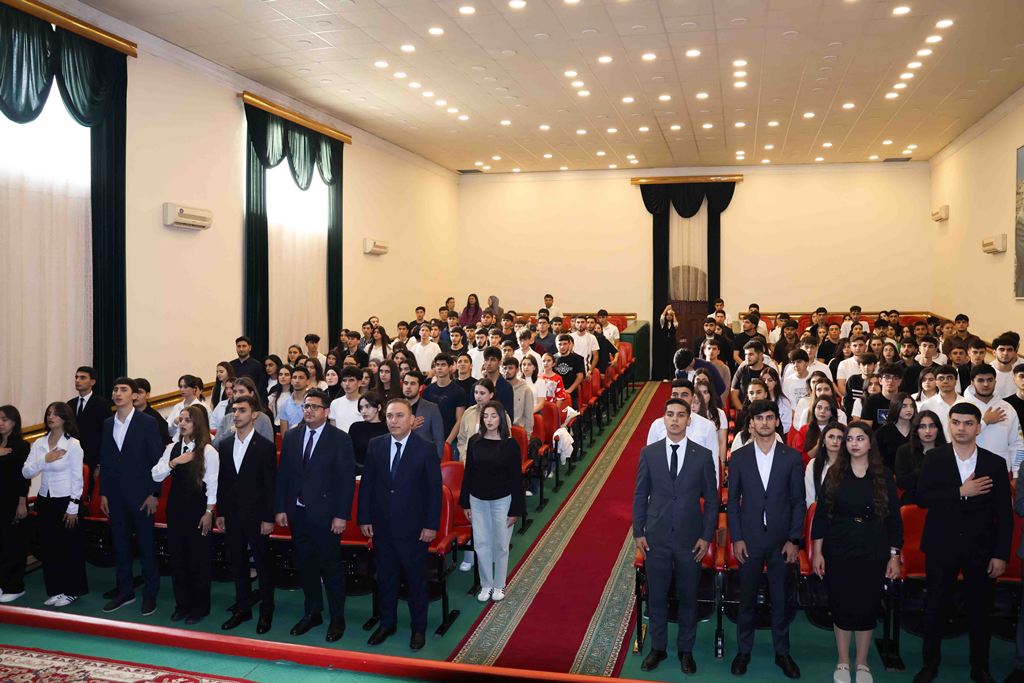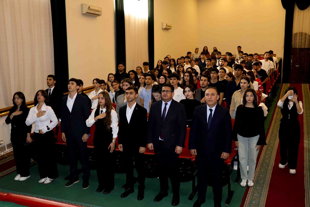 TƏHSİL.BİZ xəbər verir ki, universitetin akt zalında baş tutan görüş Azərbaycan Respublikasının Dövlət Himninin səsləndirilməsi ilə başlayıb.
