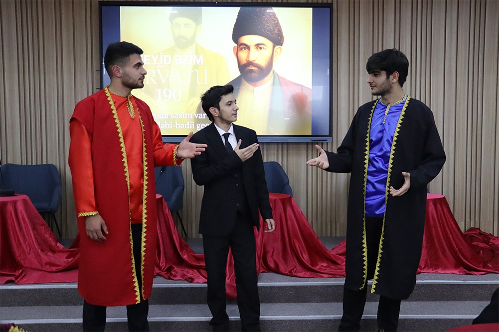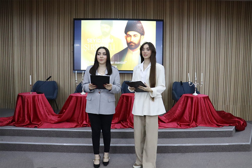 Qeyd edək ki, tədbir Prezident İlham Əliyevin “Seyid Əzim Şirvaninin 190 illiyinin qeyd edilməsi haqqında” Sərəncamını rəhbər tutaraq Tərcümə və filologiya kafedrasının təşəbbüsü və təşkilatçılığı ilə hazırlanıb.