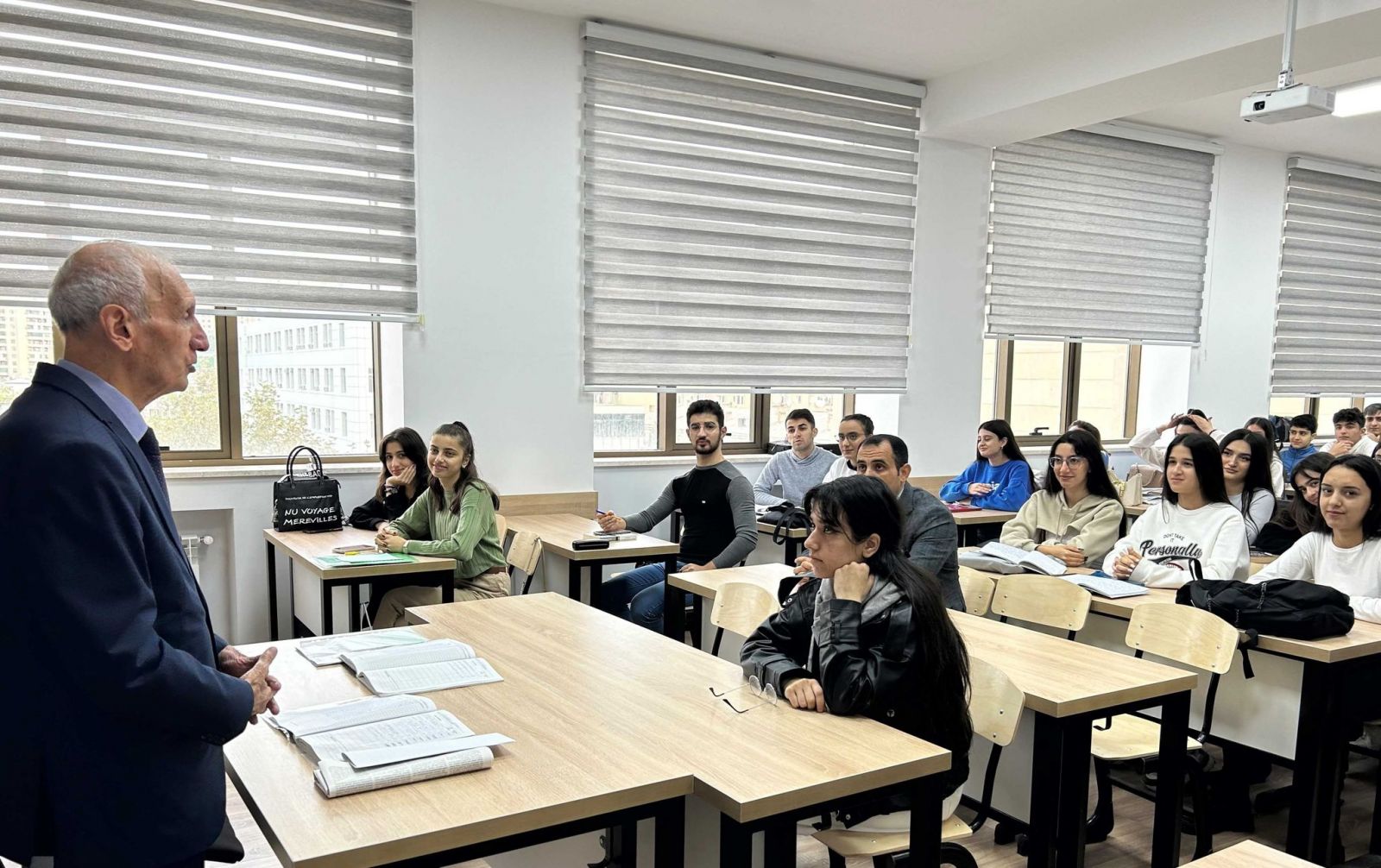Rektor qeyd edib ki, 2003-cü ildən bəri müstəqil dövlətimizin qurucusu və xalqımızın xilaskarı, dahi şəxsiyyət Heydər Əliyev cismən yanımızda olmasa da, onun ideyaları və böyük dühası əbədiyaşardır: “Ulu öndərimizin layiqli davamçısı, möhtərəm Prezidentimiz cənab İlham Əliyev həm ata vəsiyyətini yerinə yetirən övlad, həm də onun memarı olduğu dövlətin rəhbəri, qurduğu qüdrətli ordunun Ali Baş Komandanı kimi Heydər Əliyev ucalığının parlaq təcəssümüdür. Vətəni, xalqı qarşısında misilsiz xidmətlərinə görədir ki, bu gün Ümummilli lider Heydər Əliyevi ölkəmizin hər yerində və onun hüdudlarından kənarda belə hər bir azərbaycanlı yüksək ehtiram və dərin minnətdarlıq hissi ilə yad edir. Məhz Ulu öndərin müəyyən etdiyi xətti, dahi şəxsiyyətin uzaqgörənliyini Ali Baş Komandan İlham Əliyev öz prezidentlik fəaliyyəti ilə təsdiqlədi. 44 gün davam edən Vətən müharibəsində, haqq savaşımızda Azərbaycan Ordusu Ermənistanın 30 il ərzində qurduğu silahlı qüvvələrini darmadağın etdi. Azərbaycan Ordusu ən yeni tarixi yazdı. Ali Baş Komandanımızın ətrafında xalqımız yumruq kimi birləşdi, ərazi bütövlüyümüzün bərpası reallaşdırıldı, haqq qələbə çaldı. Bu parlaq qələbəmiz məhz Heydər Əliyevin Azərbaycana rəhbərlik etdiyi dövrdə bugünkü dövlət müstəqilliyimizin möhkəm təməlinin qoyulması, milli ruh, azərbaycançılıq məfkurəsinin yüksəlməyə başlaması, ordu quruculuğu sahəsində həyata keçirilən islahatlar sayəsində qazanıldı”.