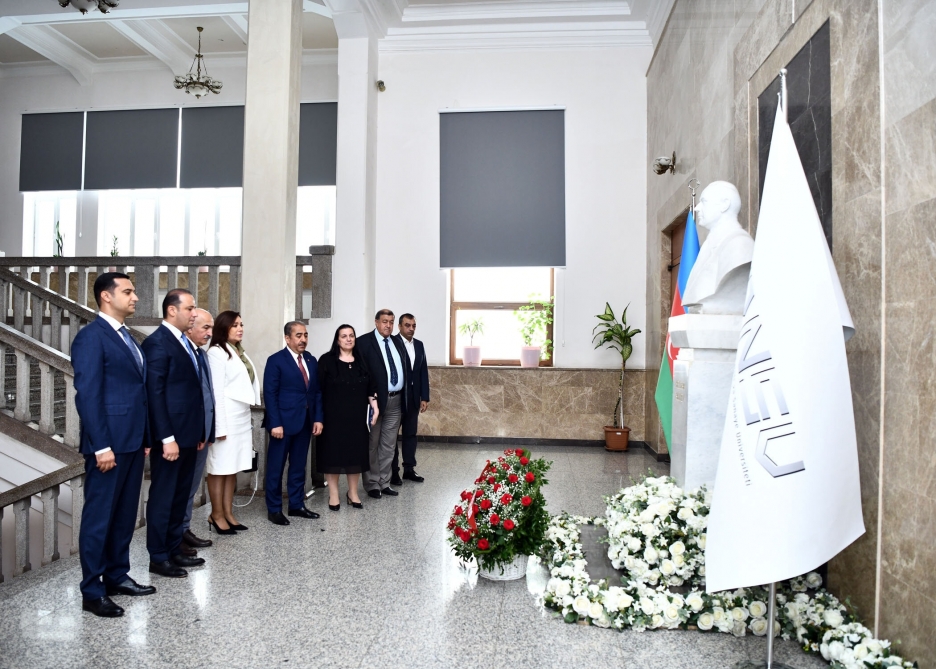 ADNSU-da Ulu Öndər Heydər Əliyevin abidəsi önünə əklil qoyulub.