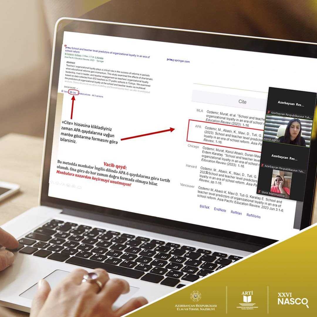 İyulun 24-də Təhsil İnstitutu (ARTİ) tərəfindən doktorantlar və gənc tədqiqatçılar üçün növbəti onlayn təlim təşkil olunub. Təlimin əsas mövzusu tezisin yazılma qaydası və elmi tədqiqatlarda düzgün istinad qaydaları olub.