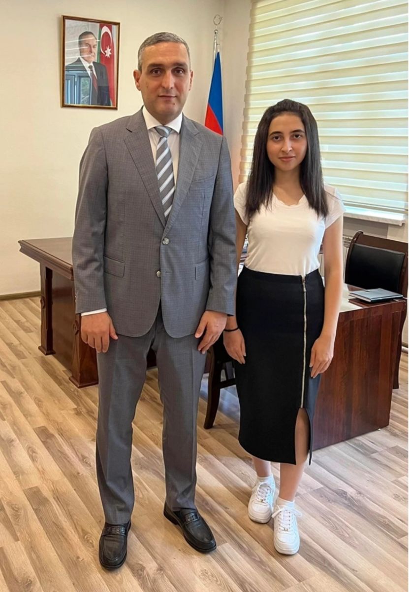 Şəmsiyyə rektor Şahin Bayramovun qəbulunda olub. Görüşdə rektor gəncimizi, onun ailə üzvlərini və müəllimlərini uğurlu nəticə münasibətilə təbrik edib, seçiminə görə Şəmsiyyəyə təşəkkürünü bildirib.