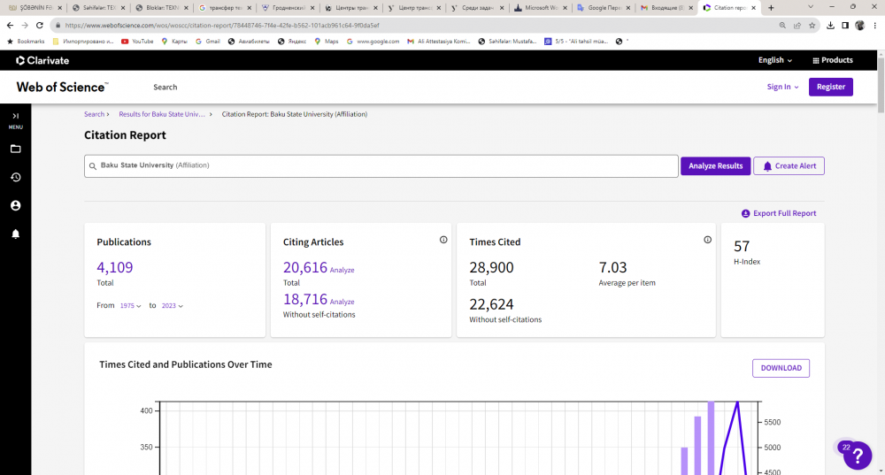 Agentliyin rəsmi məlumatına əsasən, BDU-nun əməkdaşları, doktorantları və tələbələri tərəfindən “Web of Science” bazasına daxil olan dərgilərdə artıq 4.109 elmi əsər nəşr edilib. Bu əsərlərə 29 minə yaxın istinad edilib.