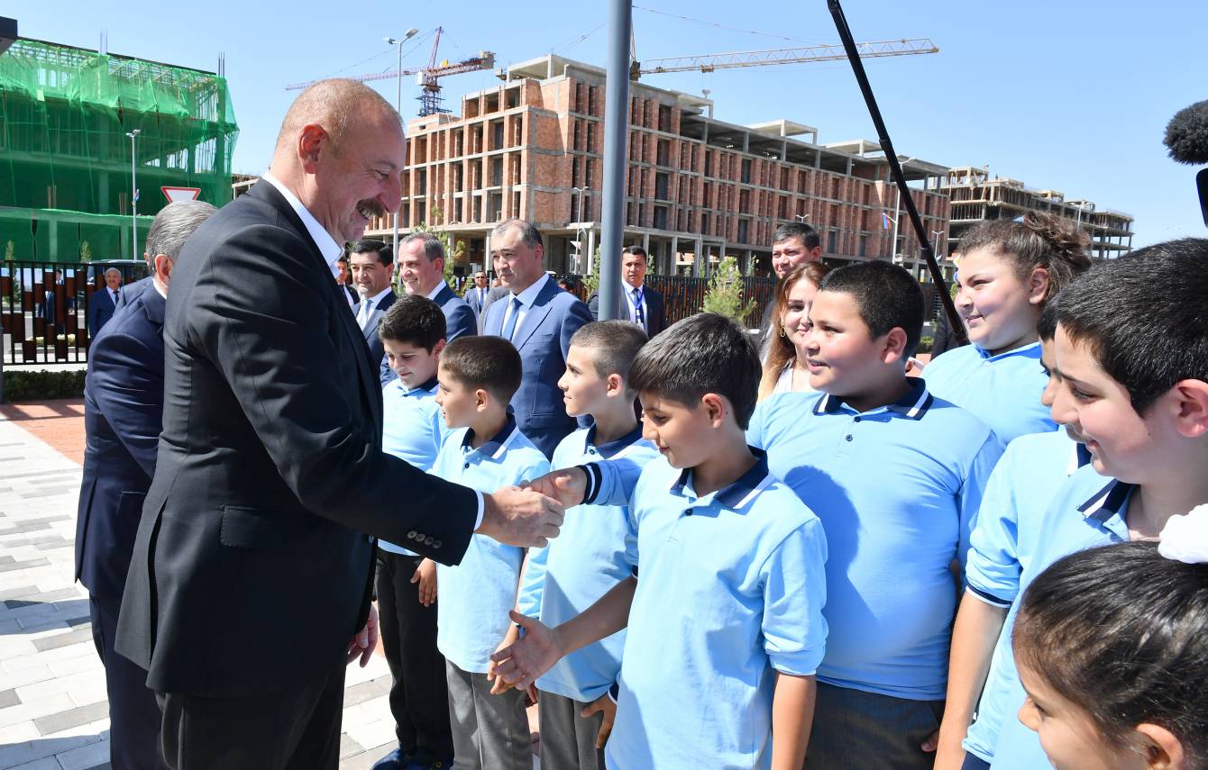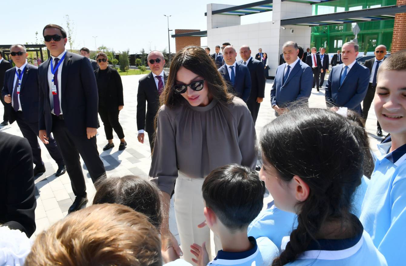 Tehsil.biz xəbər verir ki, dövlət başçıları və xanımları əvvəlcə yeni dərs ilində bu məktəbdə təhsilə başlayacaq şagirdlərlə və burada işləyəcək müəllimlərlə görüşüb söhbət etdilər.