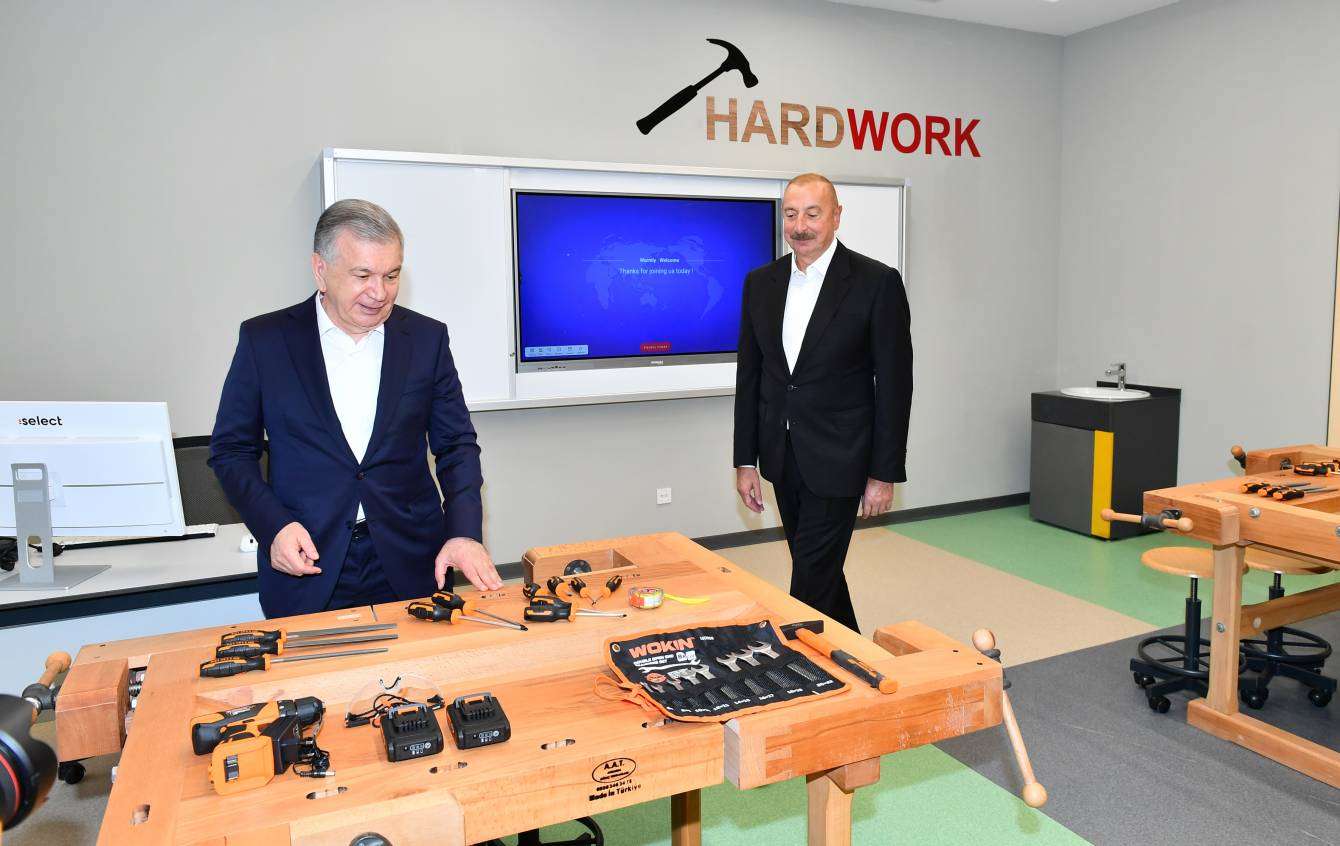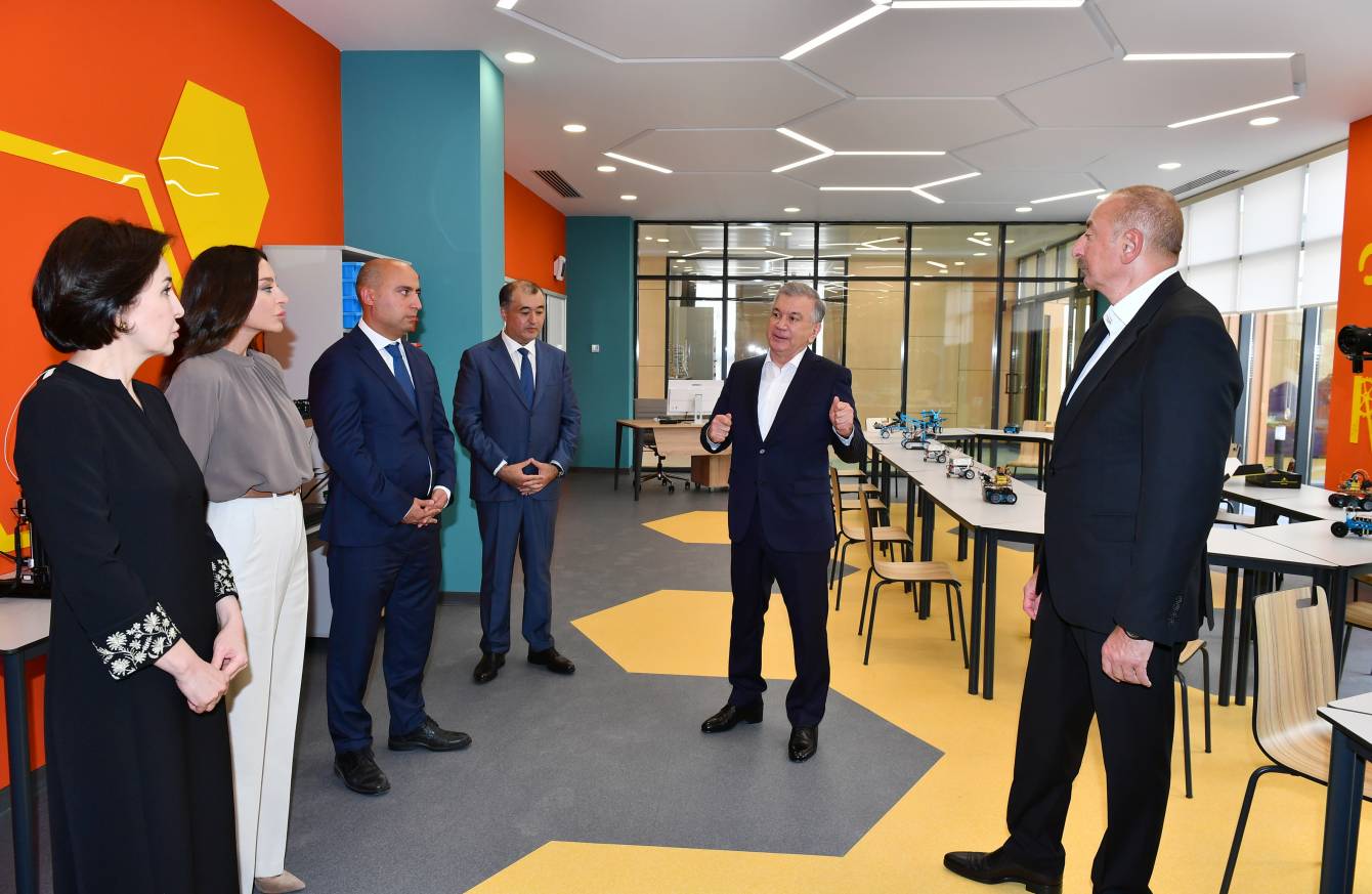 Daha sonra dövlət başçılarına və xanımlarına məktəbdə yaradılan şərait barədə məlumat verildi.