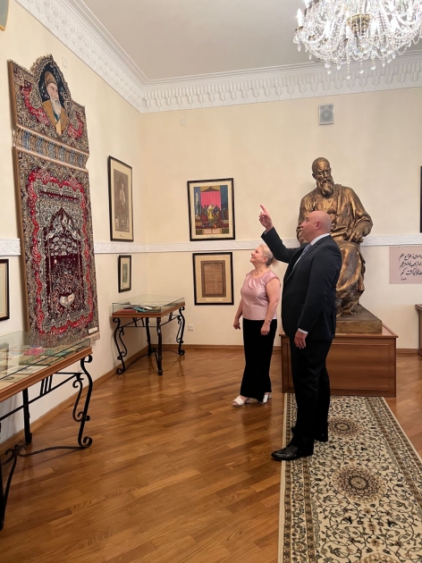 Bildirilib ki, ekspozisiya şöbəsinin müdiri Tomiris Babanlı muzeyin ekspozisiyası ilə tanış olan qonağa zəngin Azərbaycan ədəbiyyatı haqqında ətraflı məlumat verib. O, qonağı əsrlər boyu müxtəlif dillərdə və əlifbalarda yaradılmış elmi və bədii əsərlərimizlə tanış edib, bu ədəbiyyatı yaratmış görkəmli şəxsiyyətlərin ana dilimiz, milli ədəbiyyatımız və mətbuatımız uğrunda göstərdikləri fəaliyyəti diqqətə çatdırıb.