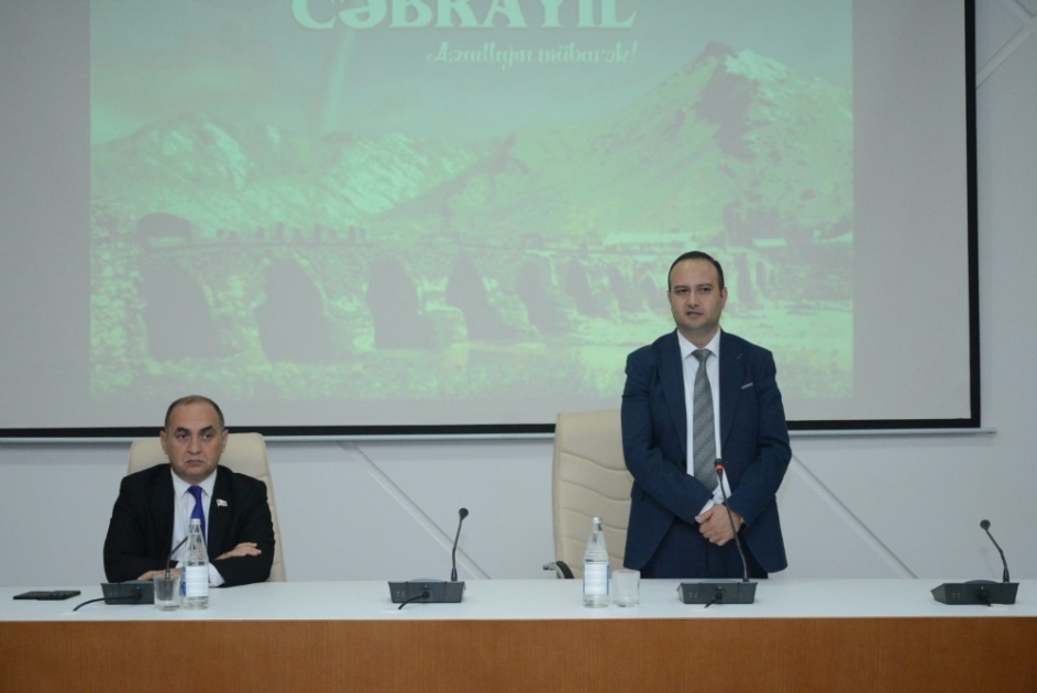 Tədbirdə Aİİ-nin rektoru, dosent Aqil Şirinov bildirib ki, oktyabrın 4-ü Cəbrayıl şəhərinin işğaldan azad edildiyi gündür. Azərbaycan Prezidenti İlham Əliyevin rəhbərliyi, şanlı Ordumuzun gücü ilə Vətən müharibəsi zamanı biz Böyük Zəfər qazandıq, torpaqlarımız işğaldan azad olundu. Zəfərə aparan hər bir günün Azərbaycan tarixinə qızıl hərflərlə yazıldığını söyləyən A.Şirinov Prezidentin Sərəncamı ilə işğaldan azad olunmuş ərazilər üzrə şəhər günlərinin təsis edilməsinin mühüm hadisə olduğunu vurğulayıb.