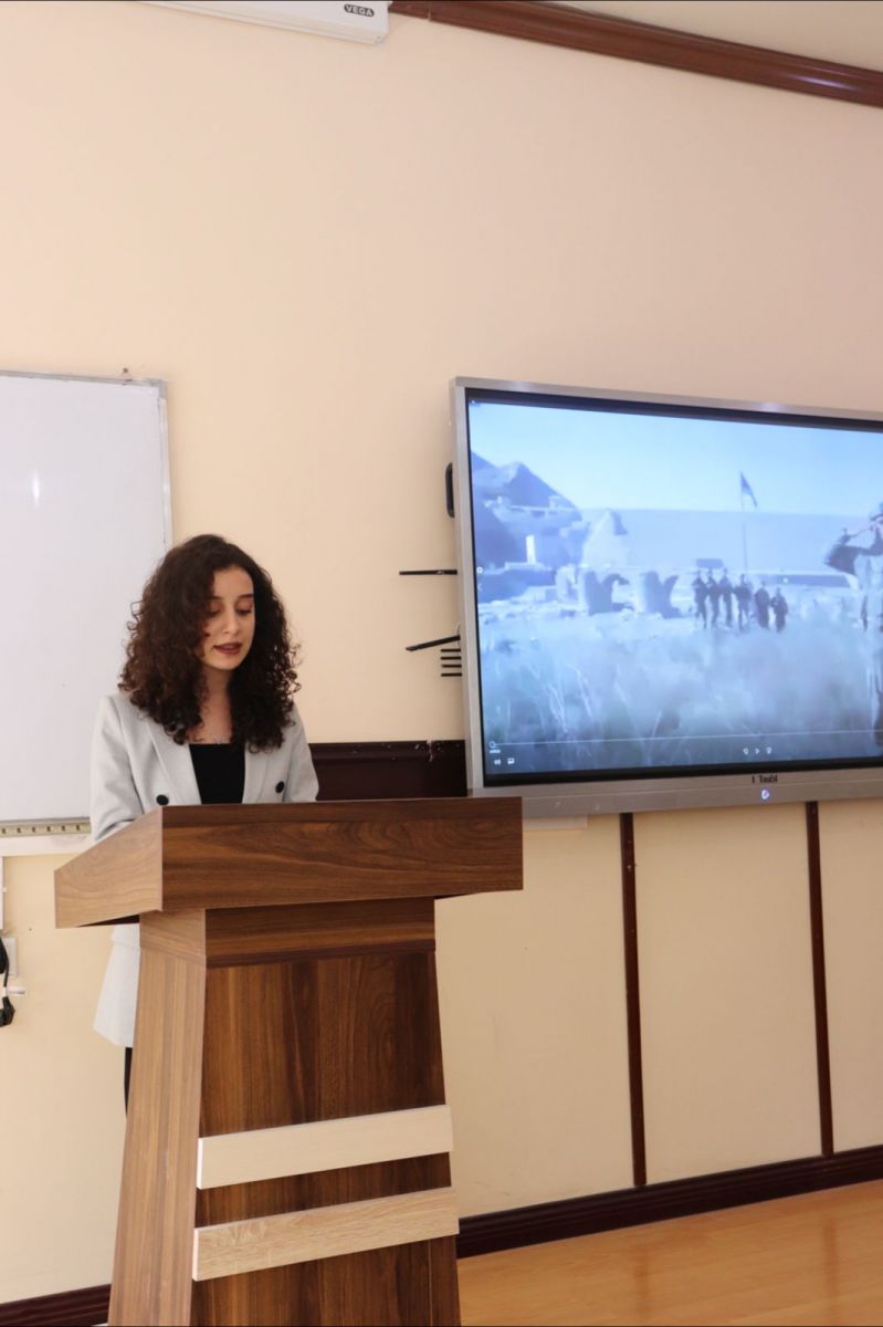 Kimya və Filologiya fakültələrinin tələbələri Aidə Kərimova və Validə Bayramlı vətənpərvərlik şeirləri səsləndirib, daha sonra Cəbrayıl rayonu haqqında videoçarx nümayiş olunub.