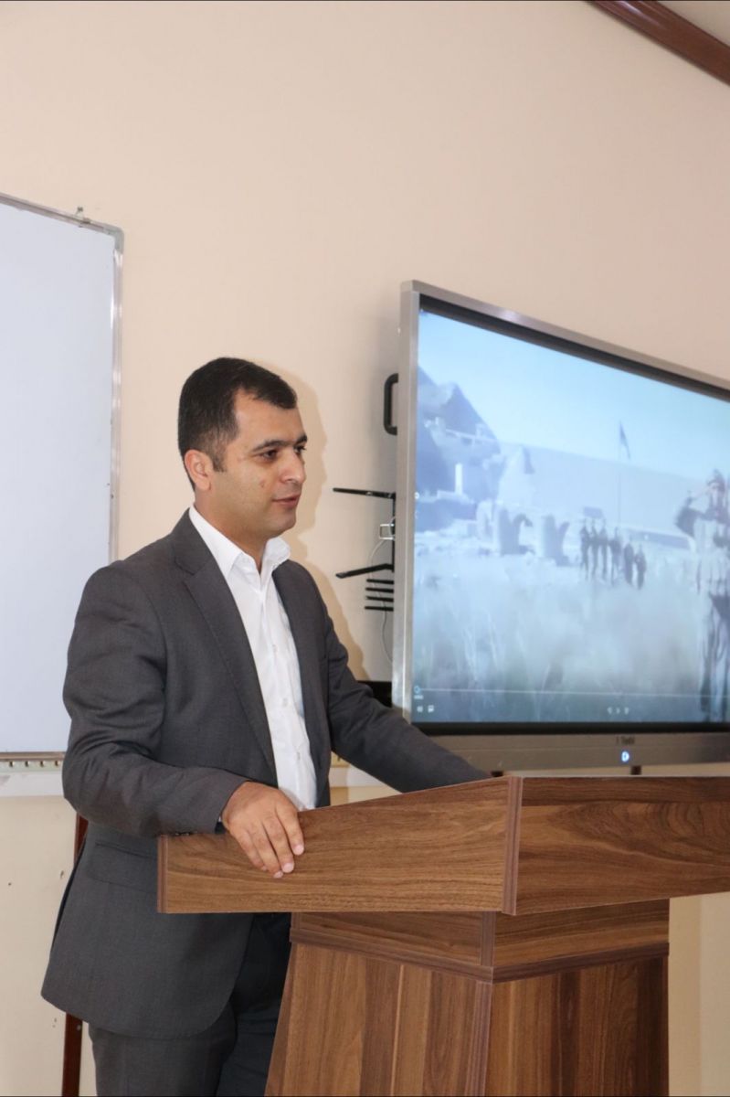 Filologiya fakültəsinin sosial məsələlər və tələbələrlə iş üzrə dekan müavini Anar Fərəcov qədim mədəniyyət mərkəzlərindən biri kimi Cəbrayılın tarixindən, ermənilər tərəfindən vəhşicəsinə dağıdılmasından söz açıb, bu qədim yurddan çıxmış görkəmli alimlərin elm və təhsilimizin inkişafına verdiyi töhfələrdən danışıb.