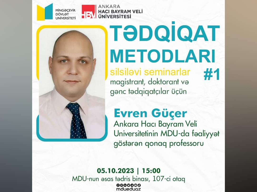 Ankara Hacı Bayram Veli Universitetinin (AHBVU) MDU-da fəaliyyət göstərən qonaq professoru Evren Güçer tərəfindən keçirilən seminarda magistrant, doktorant və gənc tədqiqatçılar iştirak ediblər.