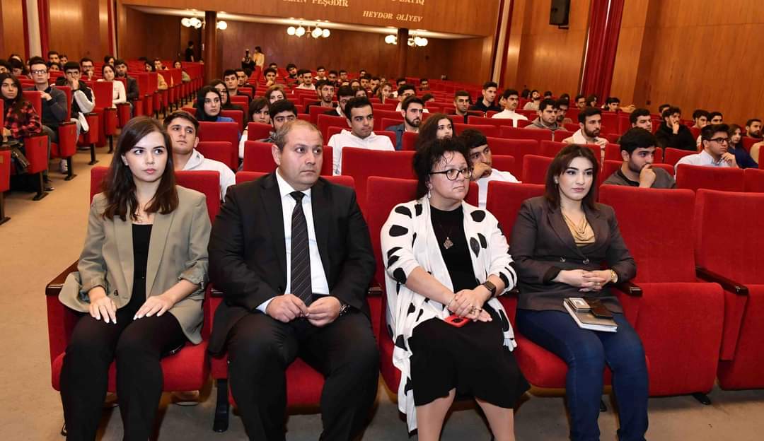 SOCAR-ın Baş ofisinin işə qəbul və yerləşdirmə şöbəsinin rəis müavini Həmid İsrafilov “Gənc İstedadlar Proqramı” haqqında təqdimatla çıxış edərək proqramın üstünlükləri, müraciət qayadaları, şərtlər, həmçinin perspektivləri barədə tələbələrə ətraflı məlumat verib.