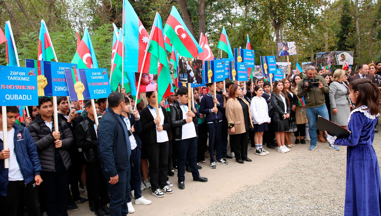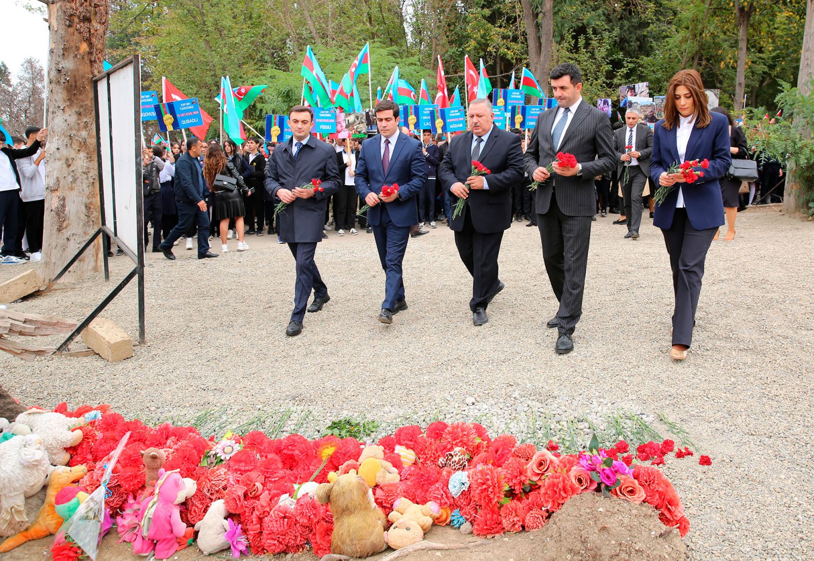 Tədbir çərçivəsində məktəblilər terror törədilən məkana yürüş ediblər. Terror nəticəsində həlak olanların xatirəsi birdəqiqəlik sükutla yad edilib, hadisə yerinə gül dəstələri qoyulub.