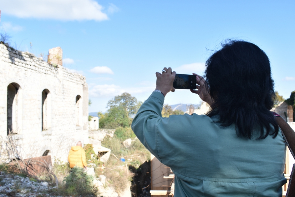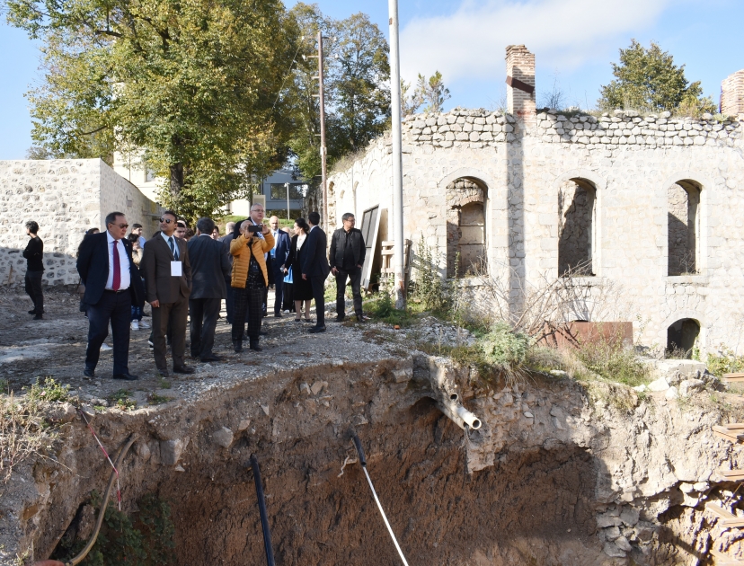 Gəzinti zamanı işğal dönəmində mədəniyyət abidələrimizə ermənilər tərəfindən vurulan ziyan, qədim artefaktlarımızın saxtalaşdırılması barədə məlumat verilib. Bildirilib ki, Şuşa işğaldan azad edildikdən sonra burada genişmiqyaslı bərpa-quruculuq işlərinə başlanılıb. İnfrastrukturun qurulması ilə yanaşı, şəhərin əsl simasının, tarixi və mədəniyyət abidələrinin bərpasına start verilib. Qeyd olunub ki, tarixi, dini və memarlıq abidələrinin bərpa və yenidən qurulmasında Heydər Əliyev Fondu yaxından iştirak edir.