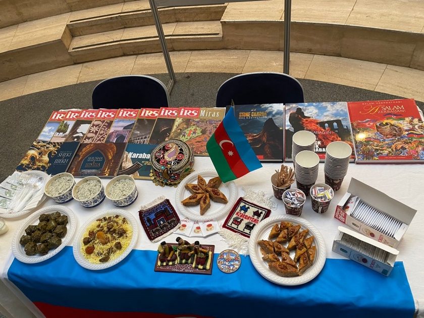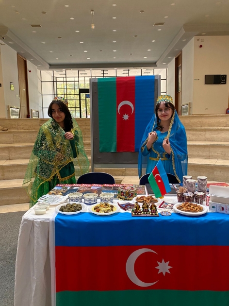 Ölkəmizə aid stenddə Azərbaycanın tarixinə, mədəniyyətinə, incəsənətinə, memarlıq abidələrinə dair nəşrlər, “Made in Azerbaijan” brendi ilə istehsal olunan məhsullar, suvenirlər və geyimlər, milli mətbəximizdən təamlar nümayiş etdirilib. Guşəni ziyarət edənlərə Azərbaycanın milli mətbəxinə aid olan dolma, plov, paxlava və digər nemətlər təqdim olunub. İştirakçılara milli sərvətlərimiz, mədəniyyət, incəsənət və mətbəx nümunələrimiz barədə ətraflı məlumat verilib.