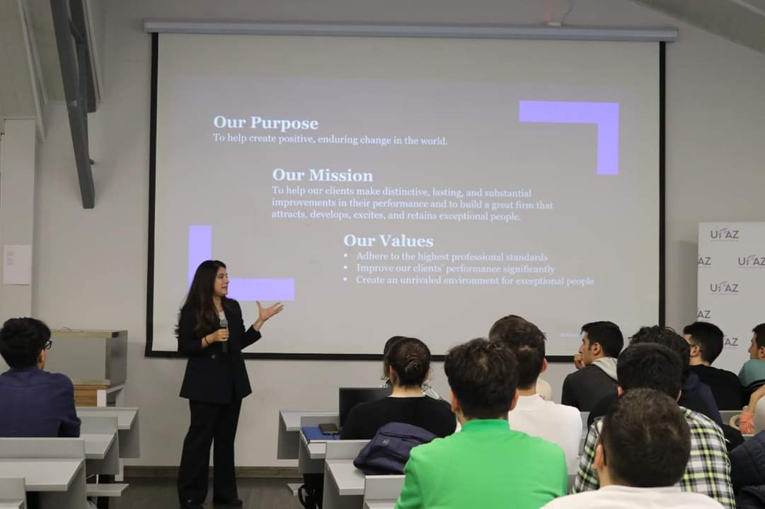 McKinsey haqqında ümumi məlumat verdikdən sonra, qonaqlar konsaltinq şirkətində karyera imkanları, işə qəbul prosedurları barədə ətraflı məlumat veriblər.