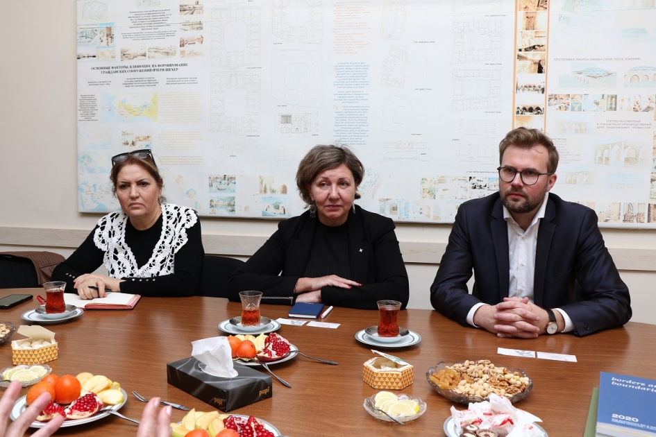 Memarlıq fakültəsinin dekanı professor Zahidə Məmmədova qonaqları rəhbərlik etdiyi fakültənin tarixi, nəzdində olan kafedralar, ixtisaslar, dünyanın ən qabaqcıl və nüfuzlu universitetləri ilə memarlıq və dizayn sahəsində qurulan uğurlu əməkdaşlıqlar barədə məlumatlandırıb. Fakültədə mütəmadi olaraq xarici müəllimlərin mühazirə dediyini, elmi-tədqiqat işləri apardıqlarını onların diqqətinə çatdırıb.