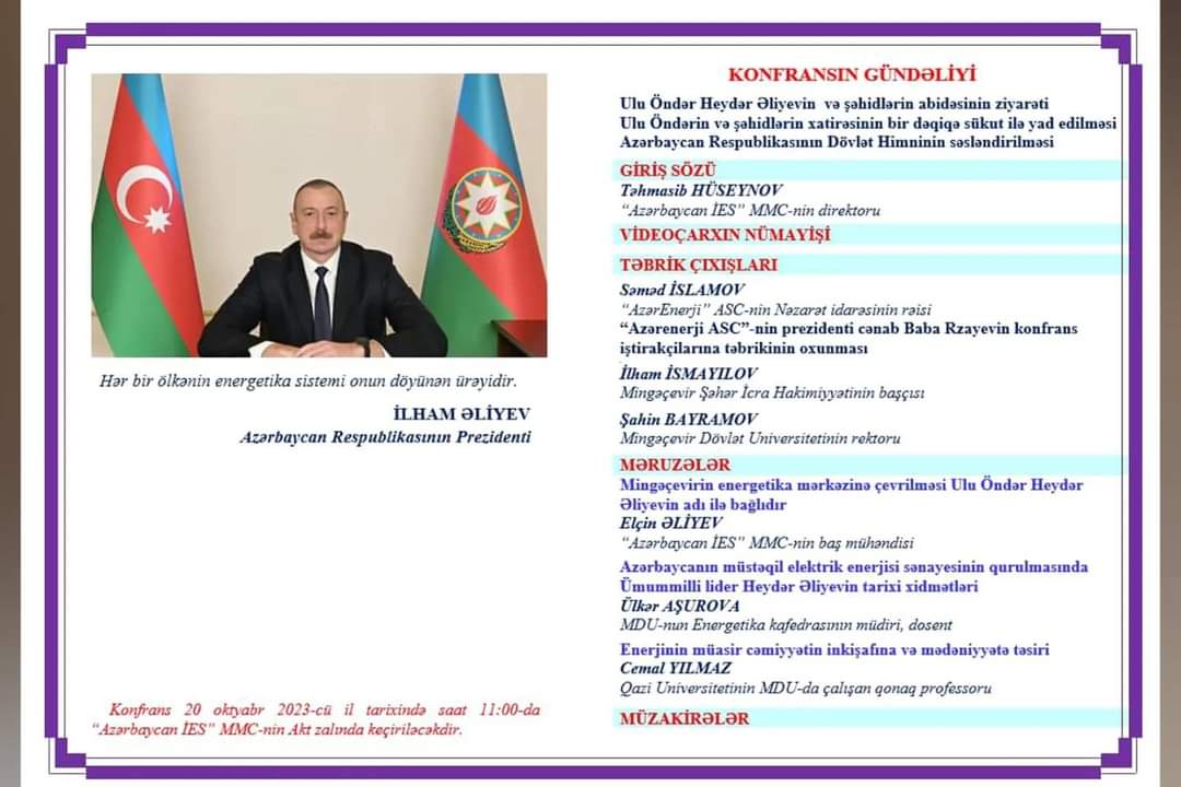 Oktyabrın 20-də “azərenerji” ASC, Mingəçevir şəhər İcra Hakmiyyəti və Mingəçevir Dövlət Universitetinin (MDU) birgə təşkilatçılığı ilə Mingəçevir şəhərinin 75 illik yubileyi və Energetiklər Gününə həsr olunmuş “Azərbaycanın enerji təminatında Mingəçevirin rolu” mövzusunda elmi-praktik konfrans keçirilib.