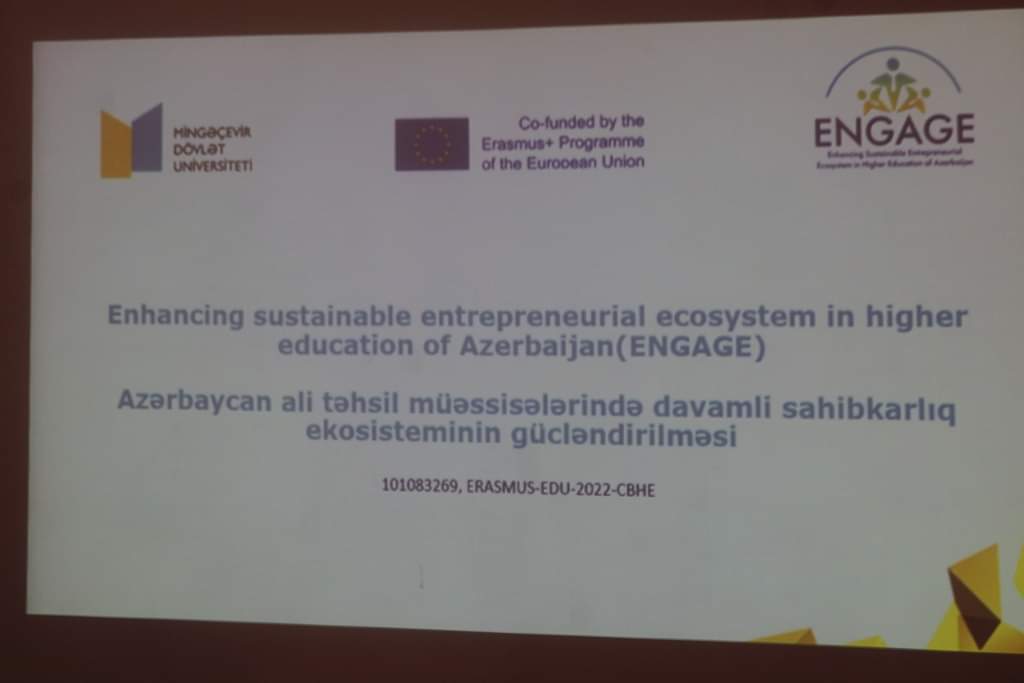 Mingəçevir Dövlət Universitetinin (MDU) koordinatoru olduğu və Avropa Komissiyası tərəfindən maliyyələşdirilən “Azərbaycan ali təhsil müəssisələrində davamlı sahibkarlıq ekosisteminin gücləndirilməsi” (ENGAGE) mövzusunda Erasmus+ layihəsi çərçivəsində həyata keçirilən tədbirlərlə bağlı görüş keçirilib.