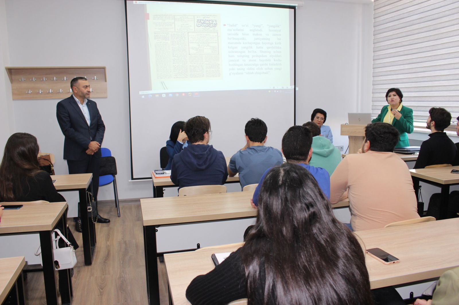 Xarici ölkələrin jurnalistikası fənninin qonağı olan professor Özbəkistan jurnalistikası tarixi, ilk yaranan qəzet və jurnallar haqqında təqdimatla çıxış edib.