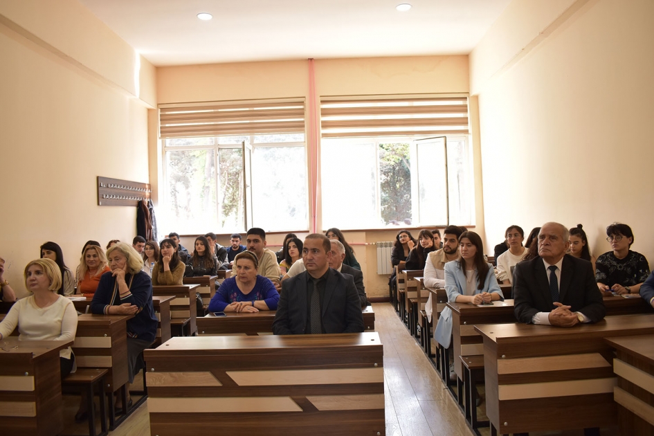 Ustad dərsinin sonunda professor Bəhram Əliyevin həmmüəllifi olduğu “Azərbaycanda əsas ekoloji problemlər və onun həlli yolları” adlı dərs vəsaitinin təqdimatı olub.