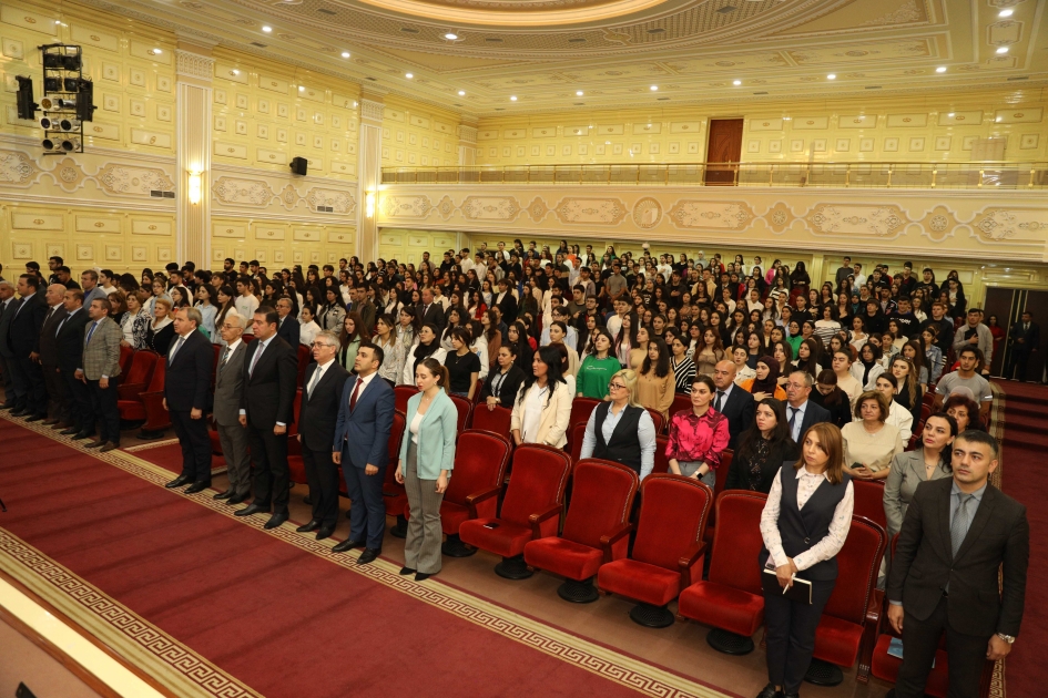 BDU-dan "Tehsil.biz"ə verilən məlumata görə, əvvəlcə Dövlət himni səsləndirilib, Ümummilli Lider Heydər Əliyevin və torpaqlarımızın azadlığı uğrunda həlak olan şəhidlərimizin əziz xatirəsi bir dəqiqəlik sükutla yad edilib.