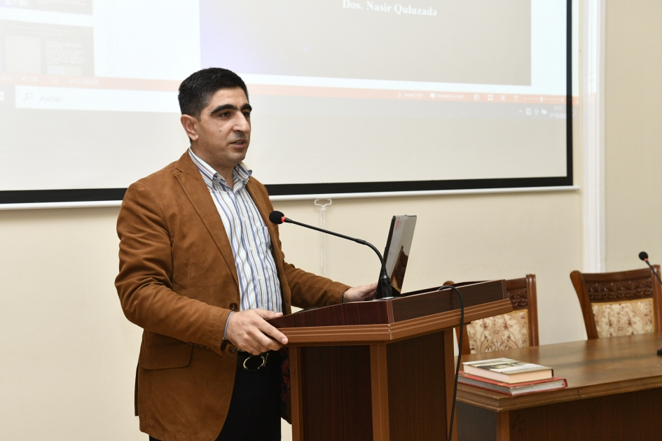 Sonra Arxeologiya elmi fond şöbəsinin müdiri, dosent Nasir Quluzadənin mövzu üzrə məruzəsi dinlənilib. Məruzəçi muzeyin Arxeologiya şöbəsinin tarixindən bəhs edib, arxeoloji materialların muzeyə daxil olması, mühafizəsi haqqında danışıb.