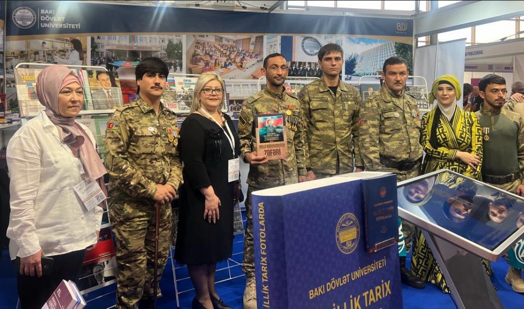 BDU-nun stendində Ümummilli Lider Heydər Əliyevin 100 illik yubileyinə və Zəfər Gününə həsr olunan kitablardan ibarət guşə daha maraqla qarşılanıb.