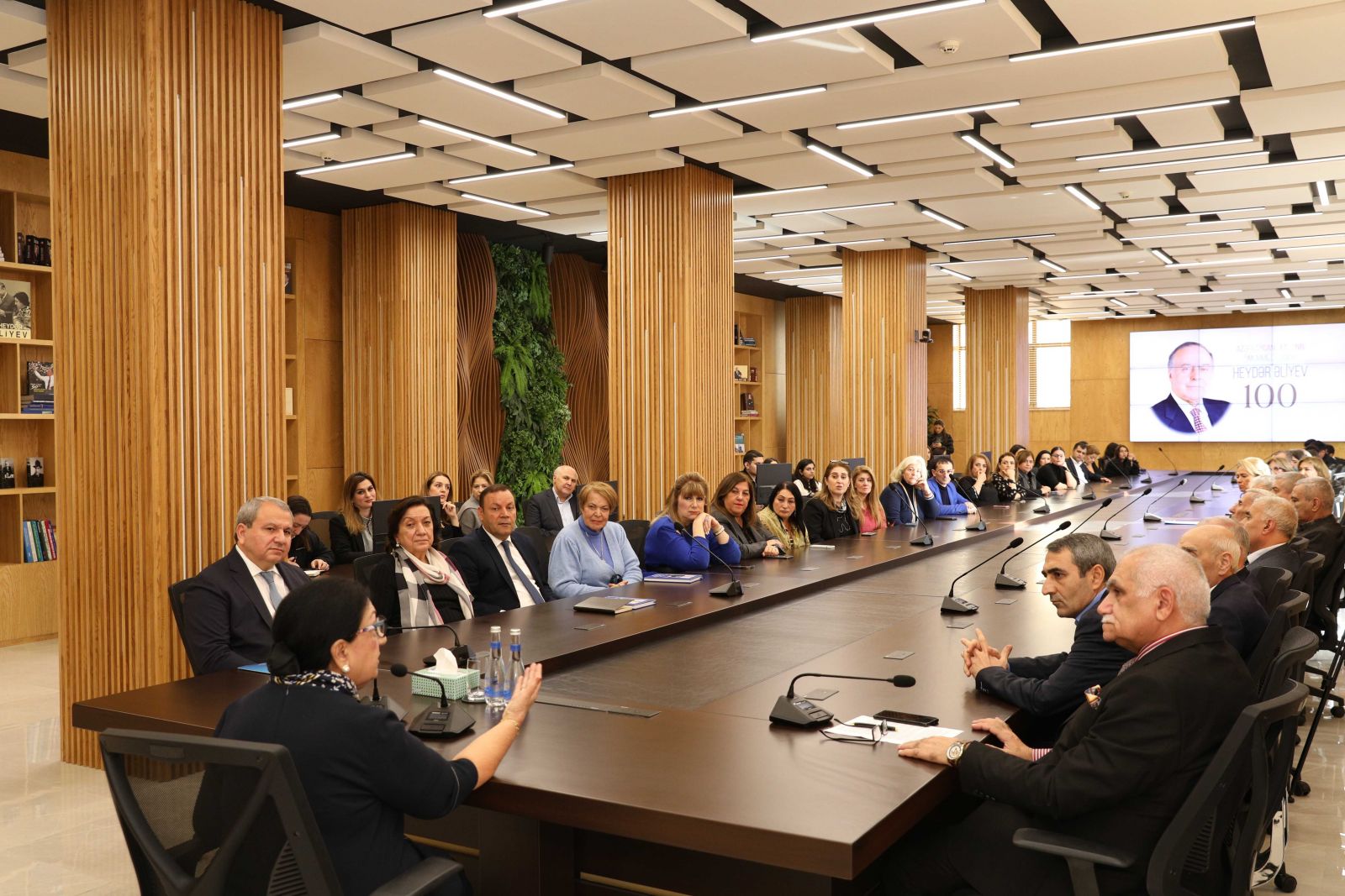 Daha sonra çıxış edən BDU-nun Rus ədəbiyyatı tarixi kafedrasının müdiri, professor Ədibə Paşayeva müasir Azərbaycanın qurucusu və memarı, Ümummilli Lider Heydər Əliyevin hüquqi dövlət və vətəndaş cəmiyyəti quruculuğu, milli-mənəvi inkişaf, müstəqilliyimizin möhkəmlənməsi istiqamətində misilsiz xidmətlərindən bəhs edib.