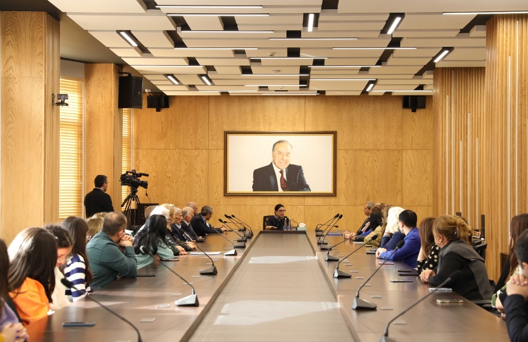 Filologiya fakültəsinin təşkilatçılığı ilə keçirilən görüşdə BDU-nun professor, müəllim, tələbə heyəti iştirak edib. Görüşün moderatoru, BDU-nun dosenti Məti Osmanoğlu dahi öndərin 100 illik yubileyi çərçivəsində Universitetdə həyata keçirilən tədbirlərdən danışıb, Ümummilli Liderin zəngin irsinin daha da dərindən öyrənilməsi istiqamətində görüşün əhəmiyyətini vurğulayıb.