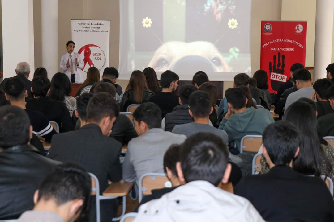 Tədbirdə ali təhsil ocağının tələbələrinə sağlamlığa ciddi təhlükə olan İnsanın İmmunçatışmazlığı Virusu (İİV) və Qazanılmış İmmun Çatışmazlığı Sindromu (QİÇS) haqqında geniş məlumat verilib.