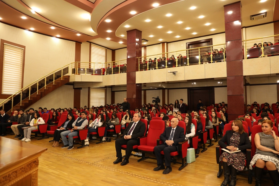 Görüşdə BDU-nun sosial məsələlər, tələbələrlə iş və ictimaiyyətlə əlaqələr üzrə prorektoru Əliş Ağamirzəyev milli-mənəvi, mədəni dəyərlərin qorunmasında belə görüşlərin önəmini vurğulayıb, suveren, ərazi bütövlüyünü tam təmin etmiş Azərbaycanın çiçəklənməsində gənclərin böyük rola malik olduğunu qeyd edib. O bildirib ki, il ərzində BDU-da müxtəlif mədəni-kütləvi proqramlar təşkil olunur, tanınmış mədəniyyət xadimləri ilə görüşlər keçirilir.