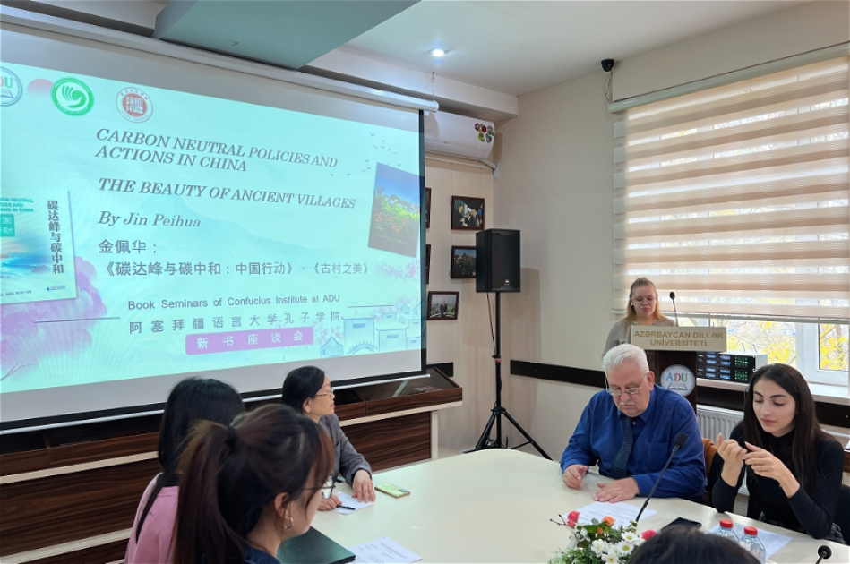 Azərbaycan Dillər Universitetinin (ADU) Konfutsi İnstitutunda professorlar Yang Jianchu, Jia Xingsu və Vang Huizhongun “Karbon zirvəsi və karbon neytrallığı: Çin fəaliyyətdə” və “Qədim kəndlərin gözəlliyi” kitablarının təqdimatı keçirilib.