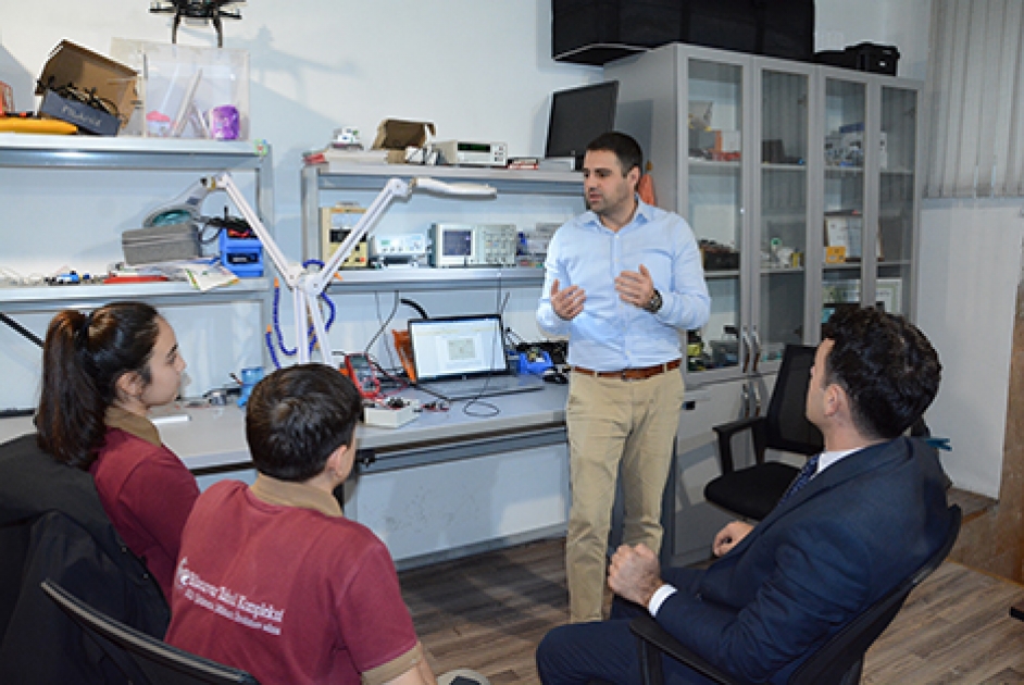 Sonra qonaqlar “İnnovativ Tədqiqatlar” qrupunun fəaliyyəti və laboratoriya ilə tanış olublar. Birgə hazırlanan layihələrdə istifadə olunan elmi yanaşmalar, elektronika və sxemlər, proqram təminatı və konstruktiv yanaşmalar ətrafında fikir mübadiləsi aparılıb. Namiq Heydərov “İnnovativ Tədqiqatlar” qrupunda hazırlanan digər layihələr haqqında məktəblilərə məlumat verib. Hazırlanan hər bir layihə şagirdlər və elmi rəhbərlərlə birlikdə geniş müzakirə olunub, şagirdlərin sualları cavablandırılıb. Qeyd edilib ki, layihələr fizika və kimya istiqamətləri üzrə həm elmi, həm praktiki layihələrdir.