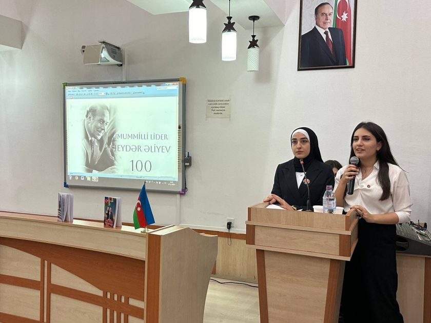 Tədbirdə “Heydər Əliyevin həyatının ilk illəri”, “Bir dahi doğulub gəlir dünyaya”, “Heydər Əliyevin siyasi fəaliyyəti”, “Heydər Əliyev və təhsil”, “Heydər Əliyev və neft strategiyası”, “Heydər Əliyevin hərbi kadrların hazırlanmasında rolu”, “Heydər Əliyev və gənclərin respublikadan kənarda təhsili”, “Heydər Əliyev siyasətinin uğurlu davamı” və s. mövzularda çıxışlar dinlənilib.