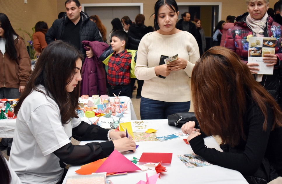 Tədbirdə ənənəvi yapon mədəniyyətinin nümunələri olan çay mərasimi, kalliqrafiya, kimono, ikebana, oriqami ilə yanaşı, müasir mədəniyyət nümunəsi olan kospley nümayişləri də yer alıb. Karate, cüdo, aikido, kendo kimi hər kəsin sevimli yapon döyüş sənətləri üzrə nümayişlər, yapon rəqsləri və mahnıları, kalliqrafiya performansı kimi maraqlı səhnə çıxışları da tamaşaçılar tərəfindən maraqla qarşılanıb.