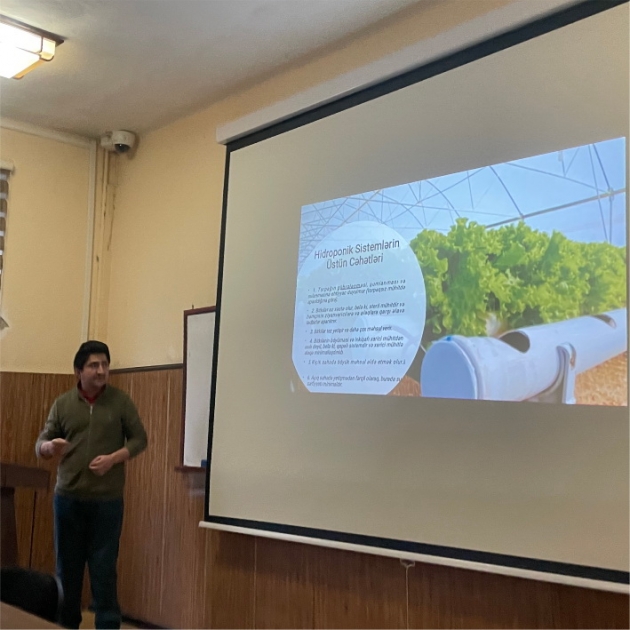 Bakı Dövlət Universitetinin (BDU) Biologiya fakültəsində Tədqiqat, İnkişaf və İnnovasiyalar üzrə Mükəmməllik Mərkəzinin Biomühəndislik elmi-tədqiqat laboratoriyasının elmi işçisi, Molekulyar biologiya və biotexnologiyalar kafedrasının müəllimi Nurlan Əmrahovun “Müasir əkinçiliyin yeni istiqamətləri: hidroponika və akvaponika sistemləri” mövzusunda elmi seminarı keçirilib.