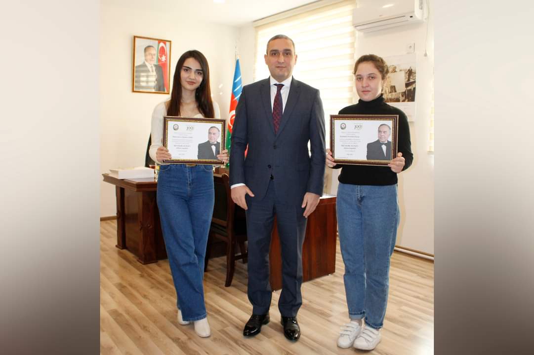 Mingəçevir Dövlət Universitetinin (MDU) rektoru Şahin Bayramov “Heydər Əliyev adına təqaüd”ə layiq görülən bu ali təhsil müəssisəsinin Təhsil fakültəsinin üçüncü kurs tələbələri Qənirə Hüseynova (Azərbaycan dili və ədəbiyyatı müəllimliyi ixtisası) və Nərmin Qədimli (Xarici dil müəllimliyi (ingilis dili üzrə) ixtisası) ilə görüşüb.