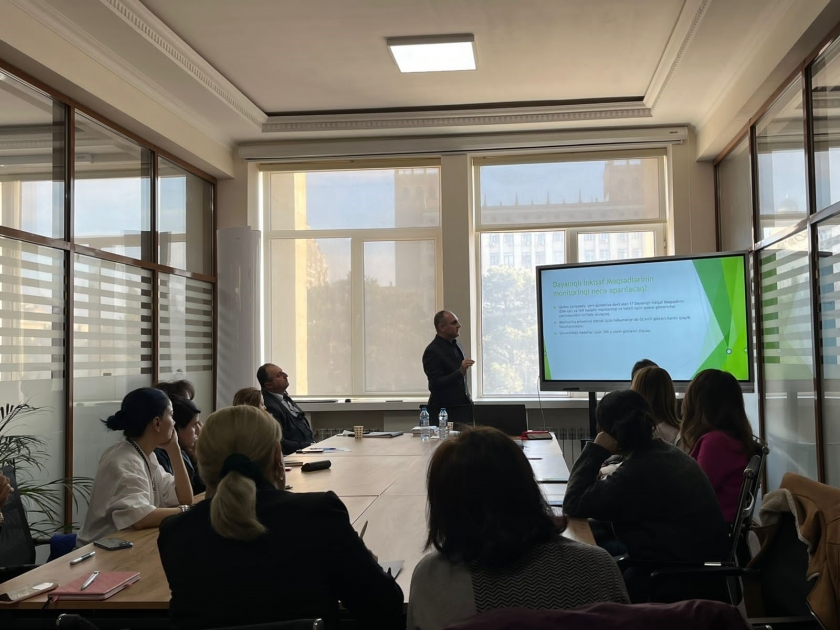 Davamlı inkişaf üzrə ekspertlər Əhəd Kazımov və Radif Mustafayev tərəfindən aparılan təlimdə Dayanıqlı İnkişaf Məqsədlərinin effektiv icrası üçün praktiki anlayışlar və strategiyalar təqdim olunub, icrası mexanizmi barəsində məlumat verilib. Dayanıqlı İnkişaf Məqsədlərinin tətbiqi sahəsində qazanılmış nailiyyətlər və qarşıda duran çağırışlarla bağlı müzakirələr aparılıb.