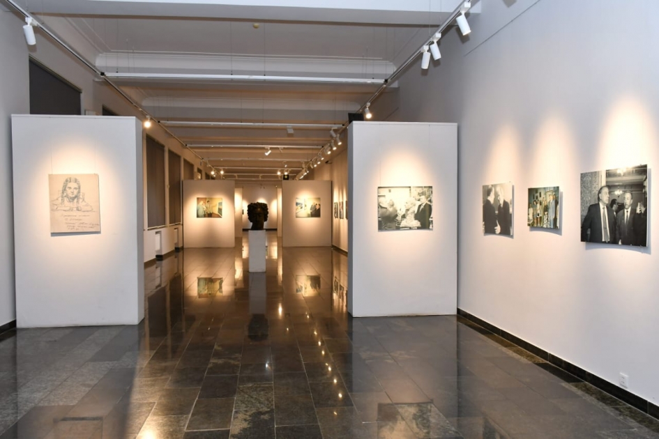 Sərgidə mədəniyyətimizin böyük himayədarı, Ulu Öndər Heydər Əliyevin vaxtilə ziyarət etdiyi rəsm sərgilərindən çəkilmiş fotolar nümayiş etdirilib.